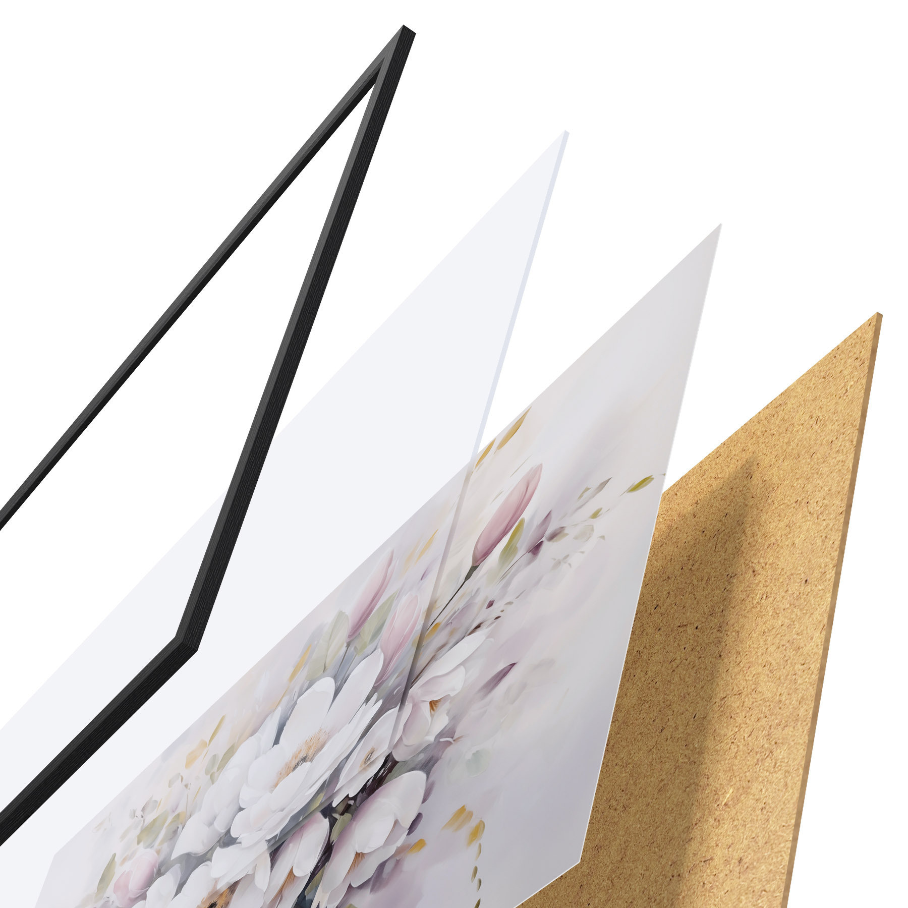 A poszter keretből, plexiből, nyomtatott képből és forgácslap hátlapból áll. A poszter a hátoldalon található rögzítőknek köszönhetően azonnal felakasztható a falra.