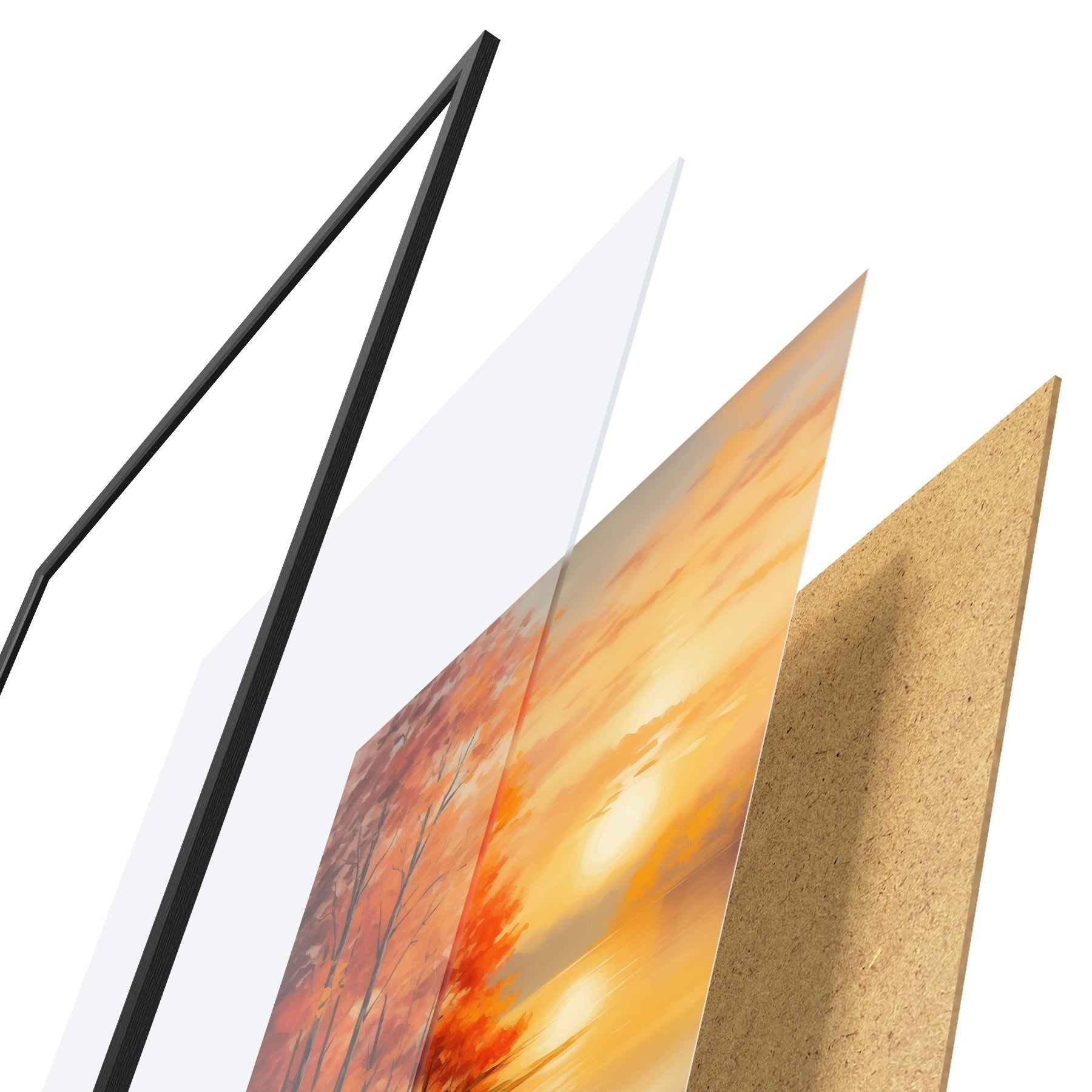 A poszter keretből, plexiből, nyomtatott képből és forgácslap hátlapból áll. A poszter a hátoldalon található rögzítőknek köszönhetően azonnal felakasztható a falra.