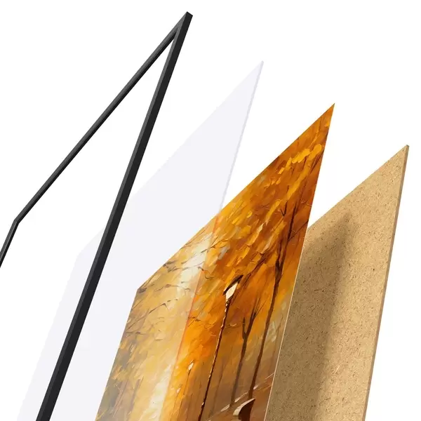 A poszter keretből, plexiből, nyomtatott képből és forgácslap hátlapból áll. A poszter a hátoldalon található rögzítőknek köszönhetően azonnal felakasztható a falra.