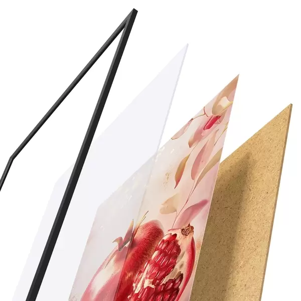 A poszter keretből, plexiből, nyomtatott képből és forgácslap hátlapból áll. A poszter a hátoldalon található rögzítőknek köszönhetően azonnal felakasztható a falra.