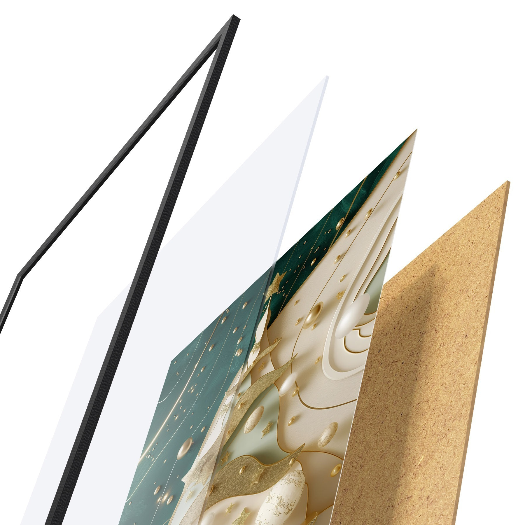 A poszter keretből, plexiből, nyomtatott képből és forgácslap hátlapból áll. A poszter a hátoldalon található rögzítőknek köszönhetően azonnal felakasztható a falra.