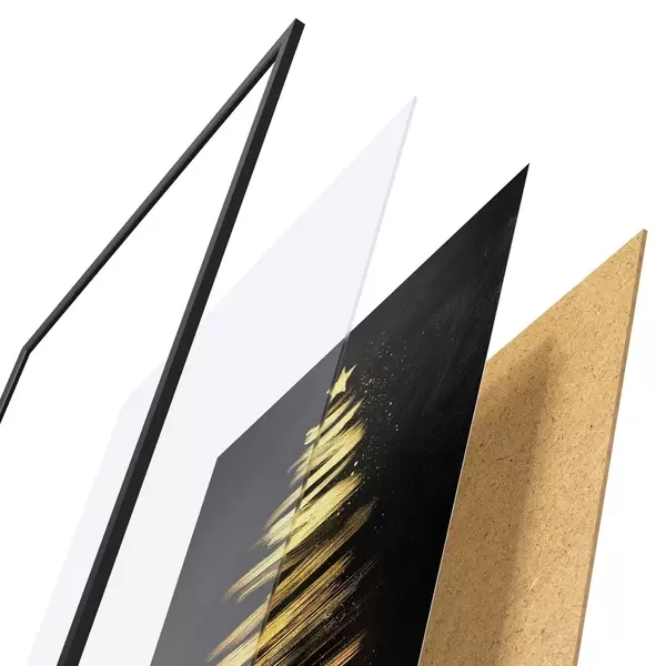 A poszter keretből, plexiből, nyomtatott képből és forgácslap hátlapból áll. A poszter a hátoldalon található rögzítőknek köszönhetően azonnal felakasztható a falra.