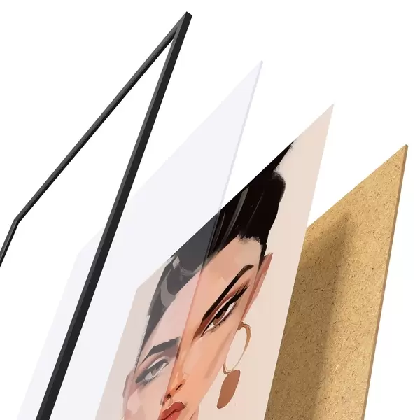 A poszter keretből, plexiből, nyomtatott képből és forgácslap hátlapból áll. A poszter a hátoldalon található rögzítőknek köszönhetően azonnal felakasztható a falra.