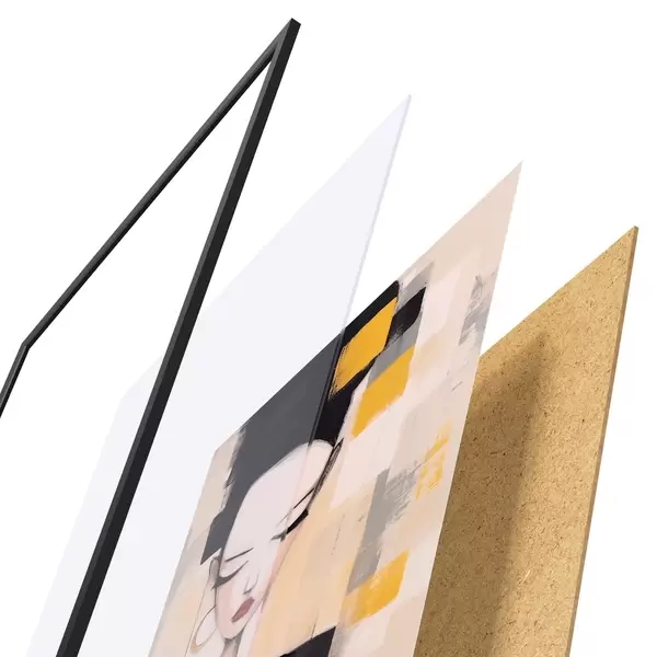 A poszter keretből, plexiből, nyomtatott képből és forgácslap hátlapból áll. A poszter a hátoldalon található rögzítőknek köszönhetően azonnal felakasztható a falra.