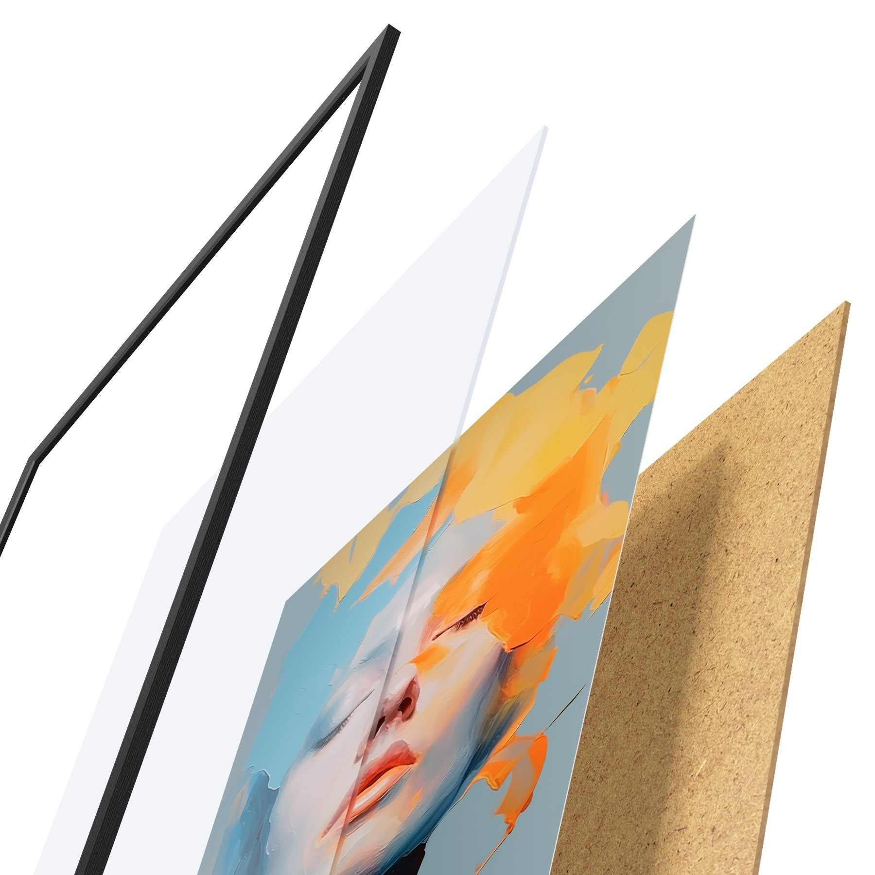 A poszter keretből, plexiből, nyomtatott képből és forgácslap hátlapból áll. A poszter a hátoldalon található rögzítőknek köszönhetően azonnal felakasztható a falra.