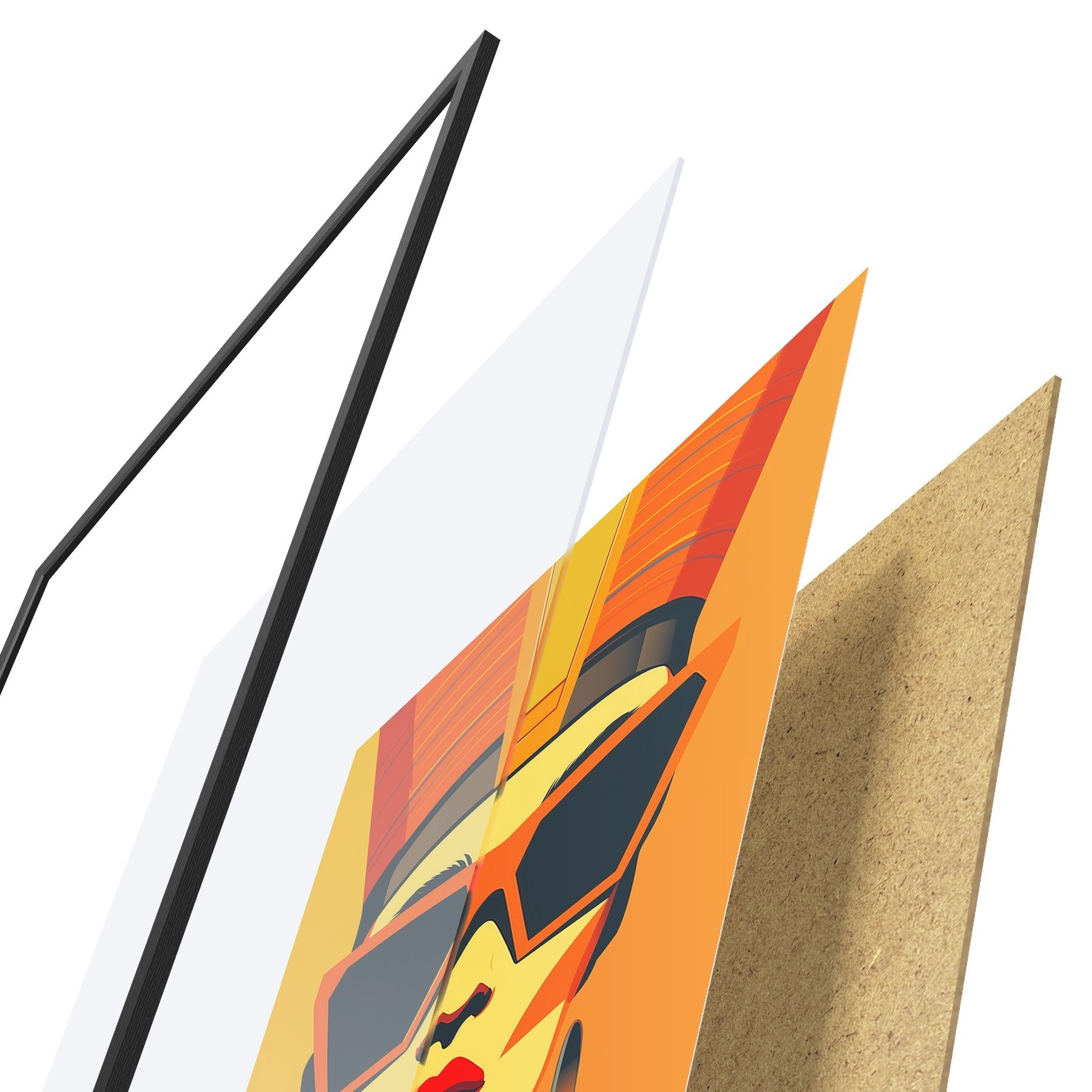 A poszter keretből, plexiből, nyomtatott képből és forgácslap hátlapból áll. A poszter a hátoldalon található rögzítőknek köszönhetően azonnal felakasztható a falra.
