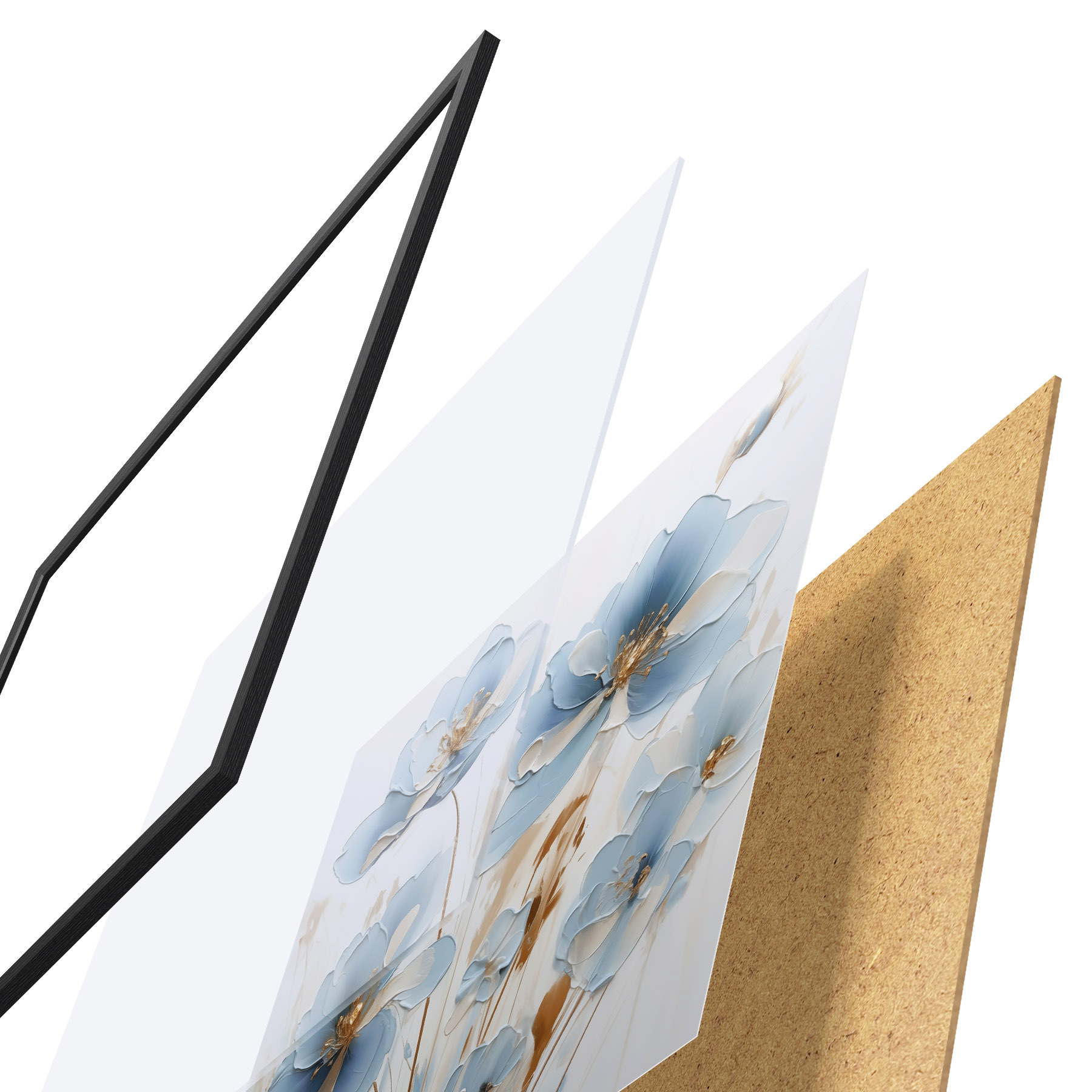 A poszter keretből, plexiből, nyomtatott képből és forgácslap hátlapból áll. A poszter a hátoldalon található rögzítőknek köszönhetően azonnal felakasztható a falra.