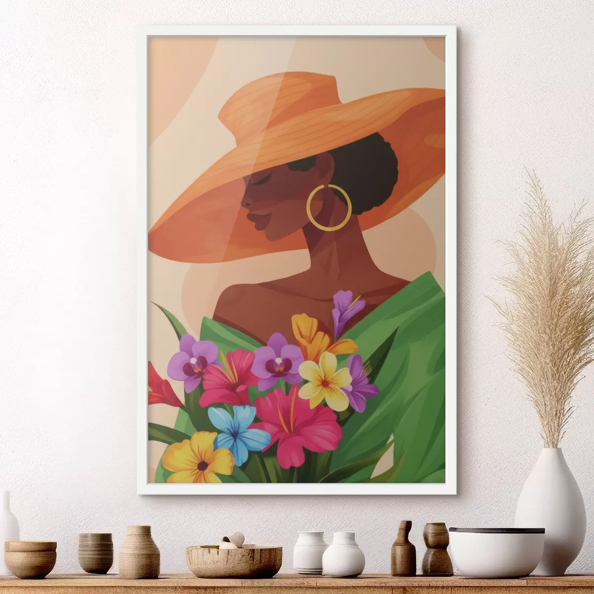 Plakát a sziklán Lány kalapban virágokkal f46843