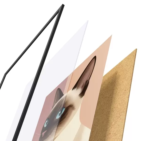 A poszter keretből, plexiből, nyomtatott képből és forgácslap hátlapból áll. A poszter a hátoldalon található rögzítőknek köszönhetően azonnal felakasztható a falra.