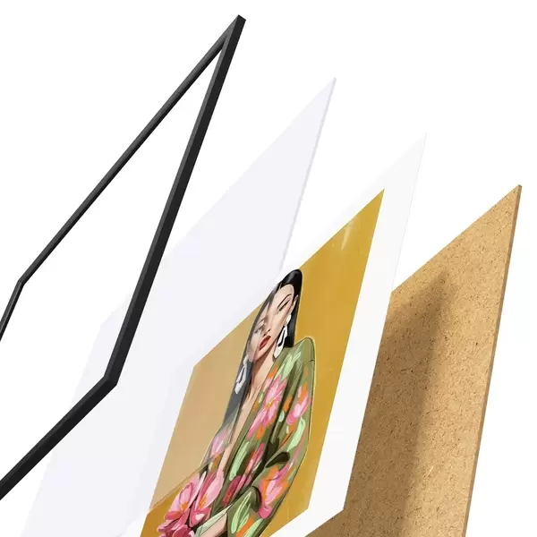 A poszter keretből, plexiből, nyomtatott képből és forgácslap hátlapból áll. A poszter a hátoldalon található rögzítőknek köszönhetően azonnal felakasztható a falra.