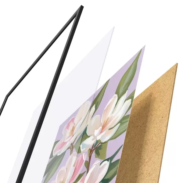 A poszter keretből, plexiből, nyomtatott képből és forgácslap hátlapból áll. A poszter a hátoldalon található rögzítőknek köszönhetően azonnal felakasztható a falra.
