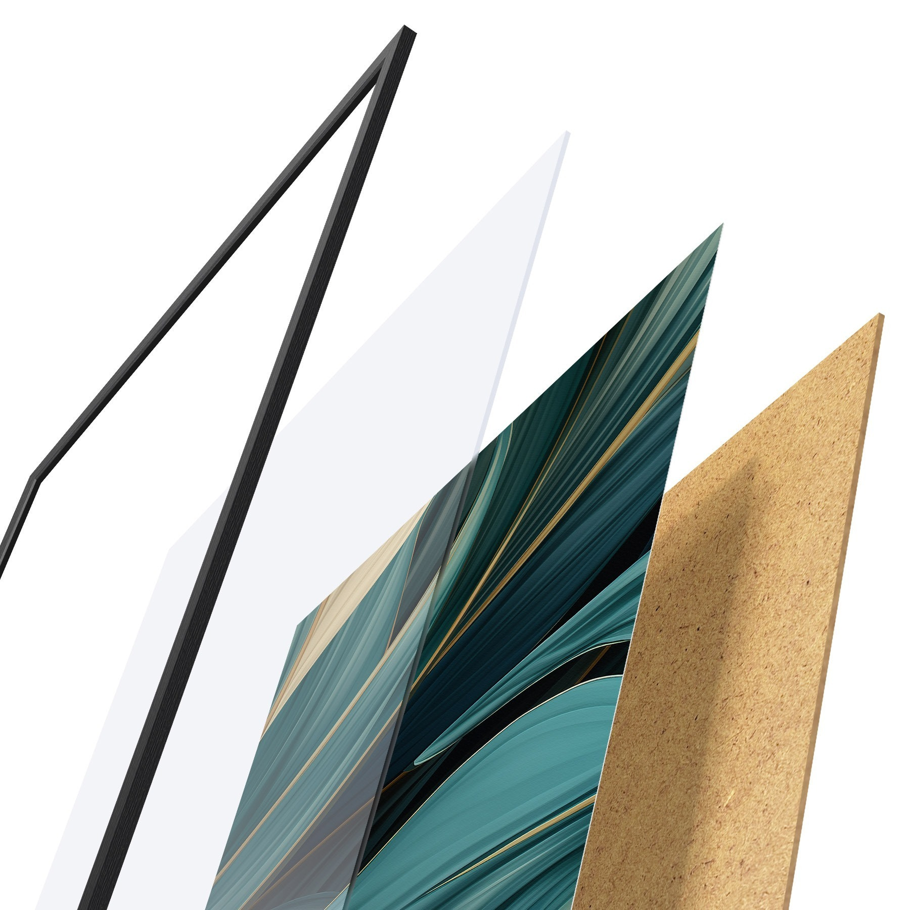 A poszter keretből, plexiből, nyomtatott képből és forgácslap hátlapból áll. A poszter a hátoldalon található rögzítőknek köszönhetően azonnal felakasztható a falra.