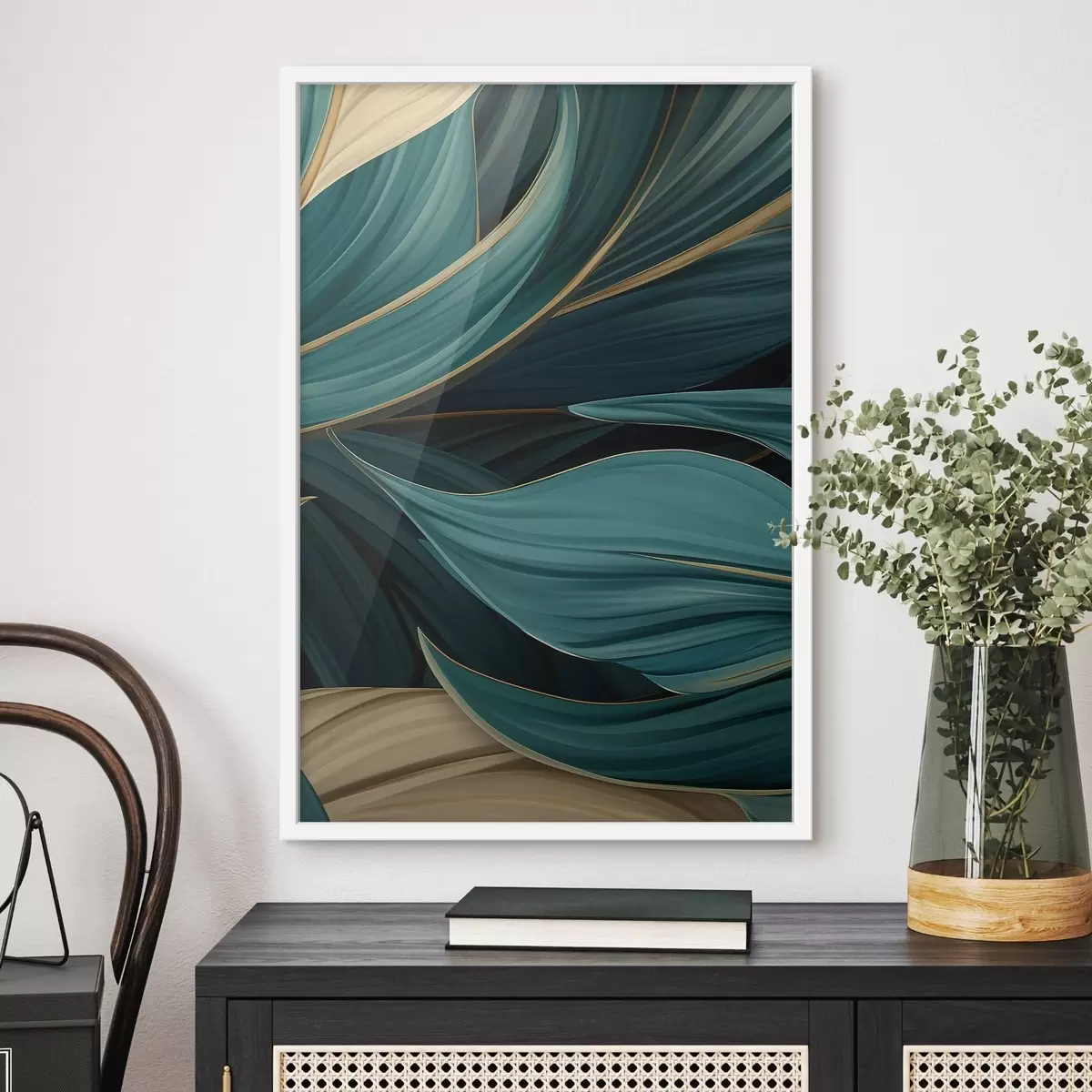 Plakát a sziklán Zöld absztrakt levelek f46879