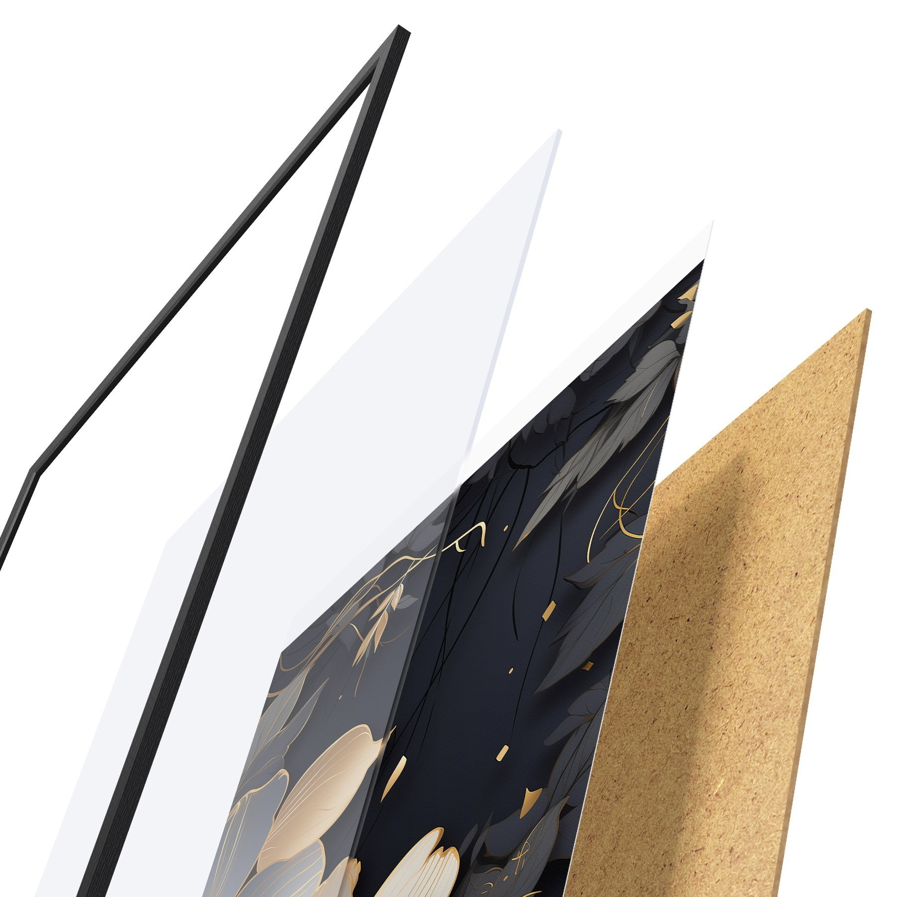 A poszter keretből, plexiből, nyomtatott képből és forgácslap hátlapból áll. A poszter a hátoldalon található rögzítőknek köszönhetően azonnal felakasztható a falra.