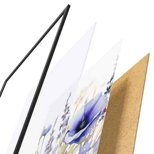 A poszter keretből, plexiből, nyomtatott képből és forgácslap hátlapból áll. A poszter a hátoldalon található rögzítőknek köszönhetően azonnal felakasztható a falra.