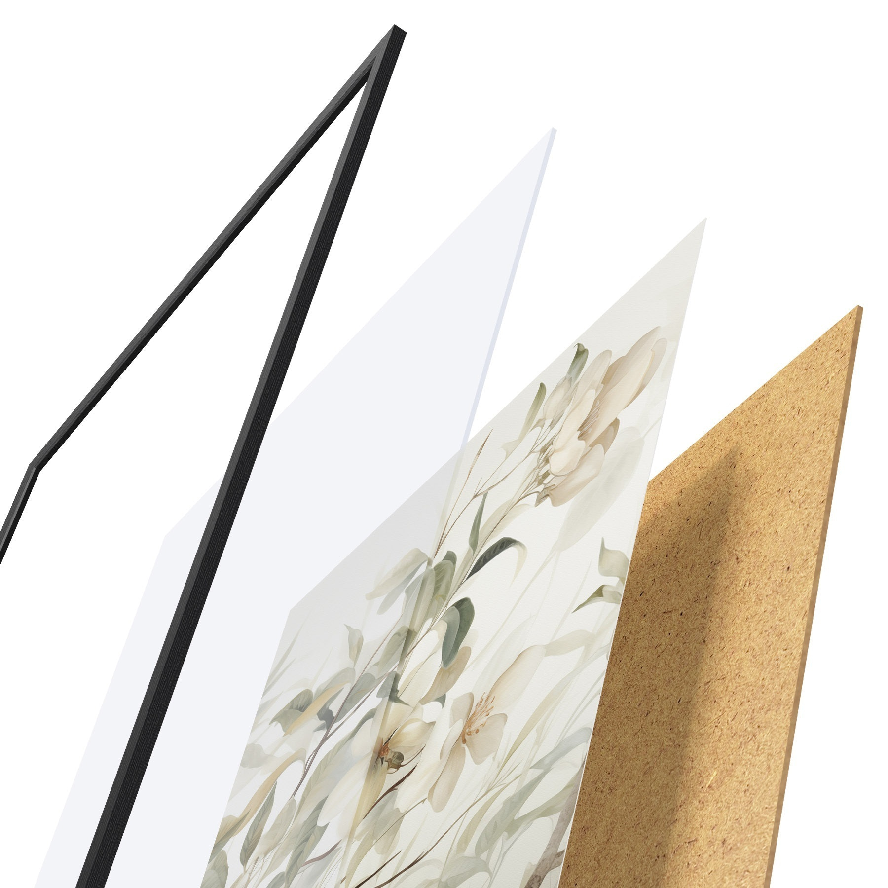A poszter keretből, plexiből, nyomtatott képből és forgácslap hátlapból áll. A poszter a hátoldalon található rögzítőknek köszönhetően azonnal felakasztható a falra.