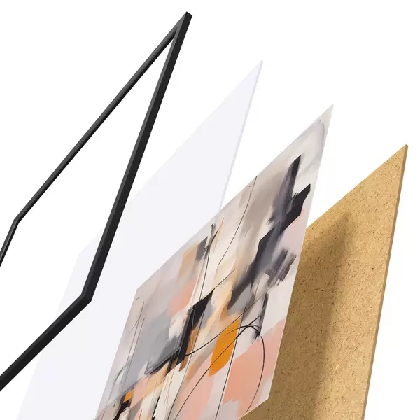 A poszter keretből, plexiből, nyomtatott képből és forgácslap hátlapból áll. A poszter a hátoldalon található rögzítőknek köszönhetően azonnal felakasztható a falra.