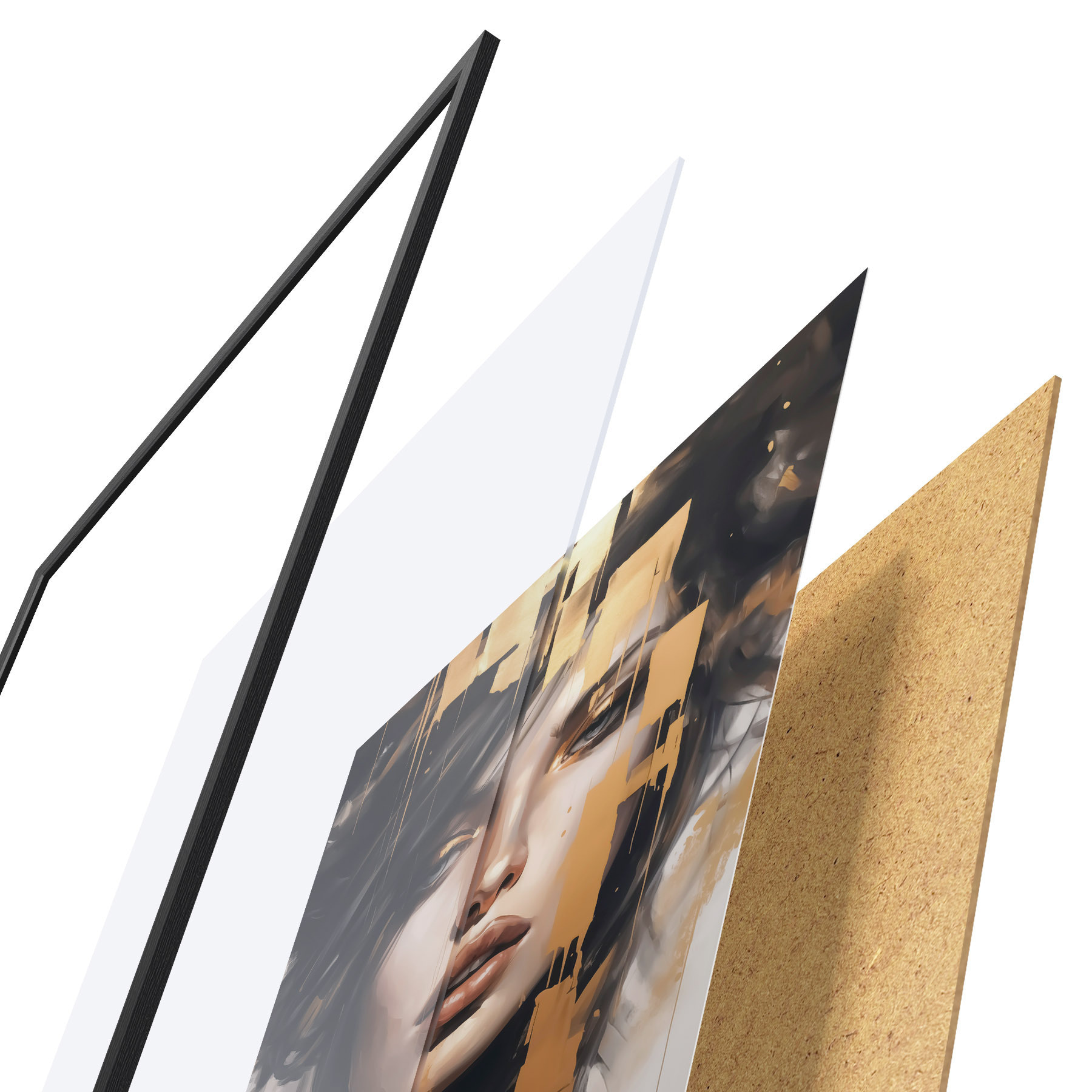 A poszter keretből, plexiből, nyomtatott képből és forgácslap hátlapból áll. A poszter a hátoldalon található rögzítőknek köszönhetően azonnal felakasztható a falra.