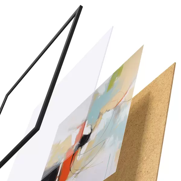 A poszter keretből, plexiből, nyomtatott képből és forgácslap hátlapból áll. A poszter a hátoldalon található rögzítőknek köszönhetően azonnal felakasztható a falra.