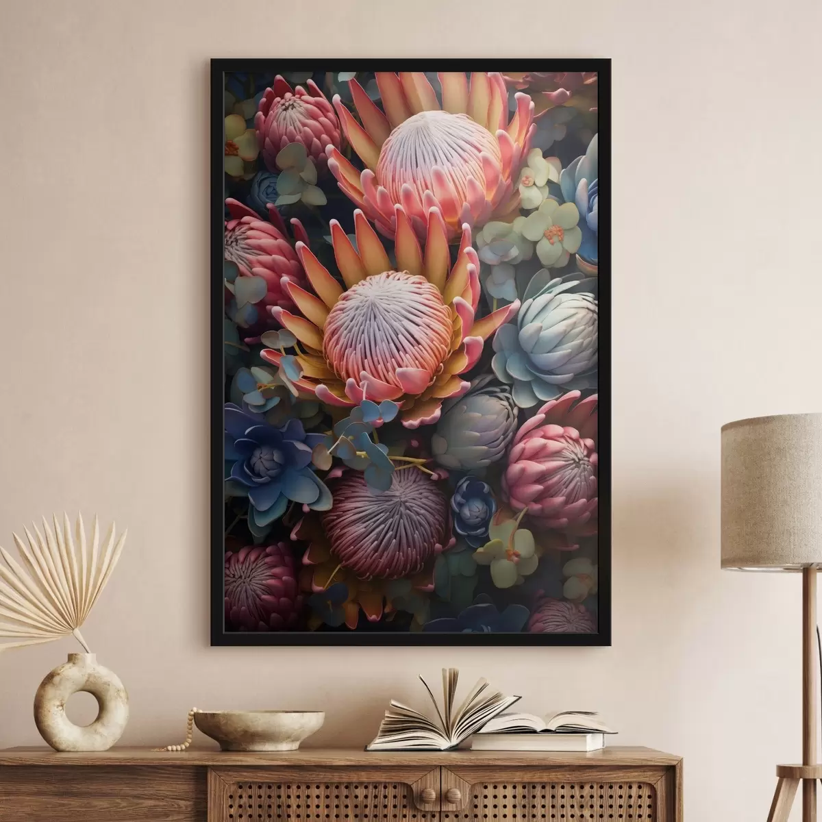 Poster Proteák, eukaliptuszok és pozsgások kompozíciója fotórealisztikus digitális művészeti stílusban Nr f46925
