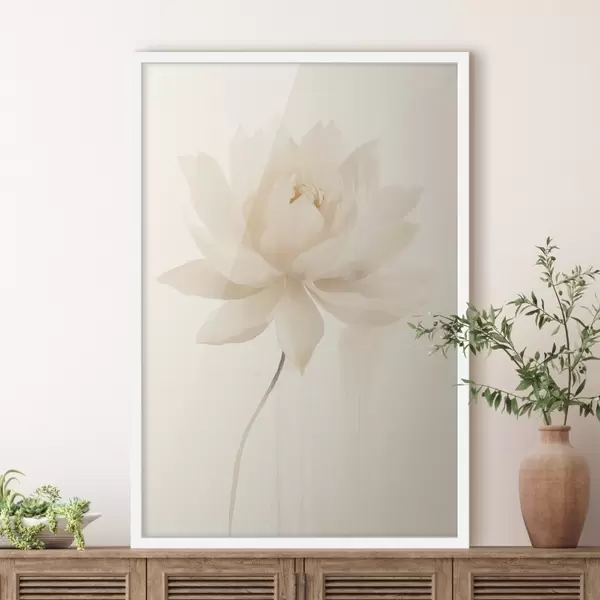 Poster Finom fehér lótusz világos háttér előtt, minimalista stílusban Nr f46936