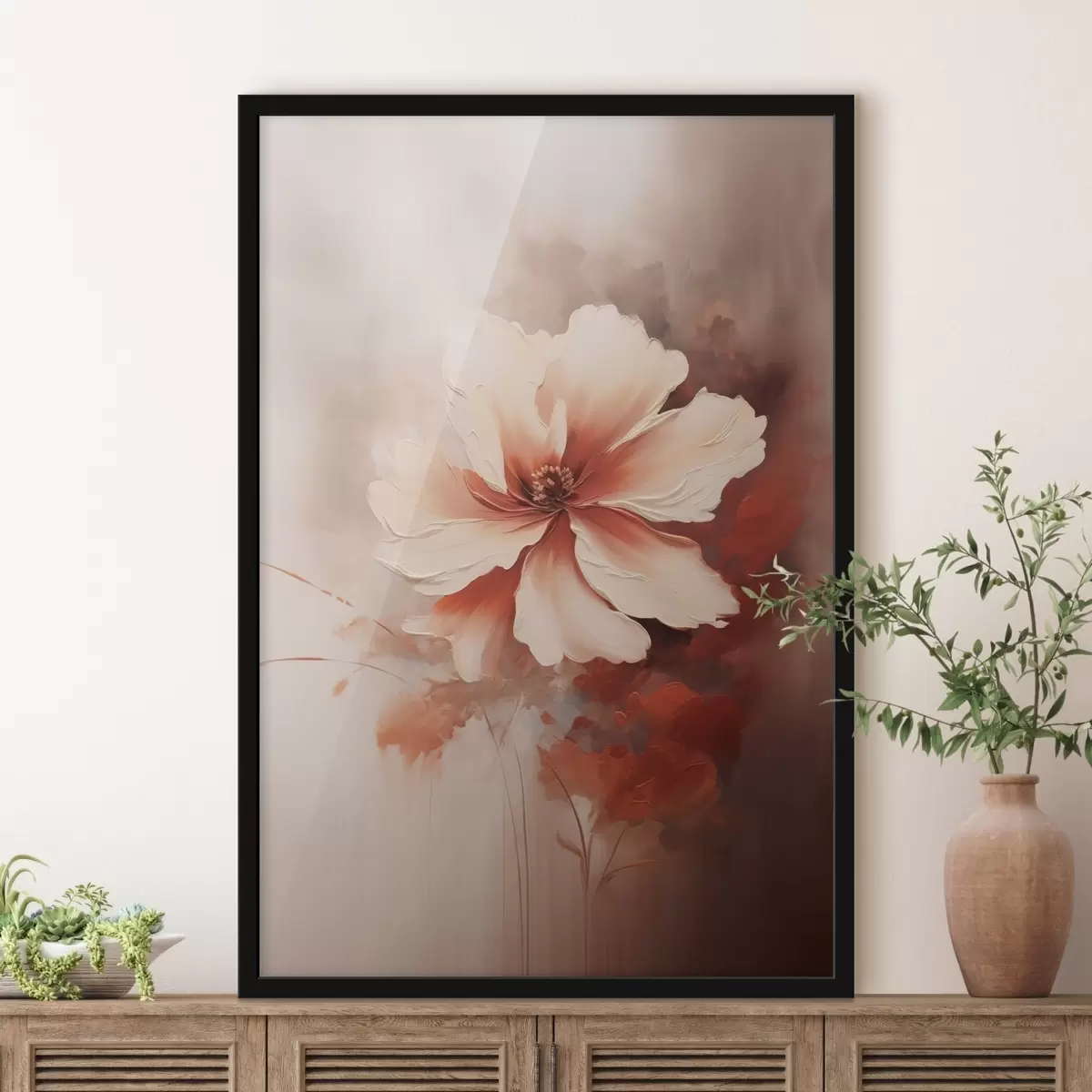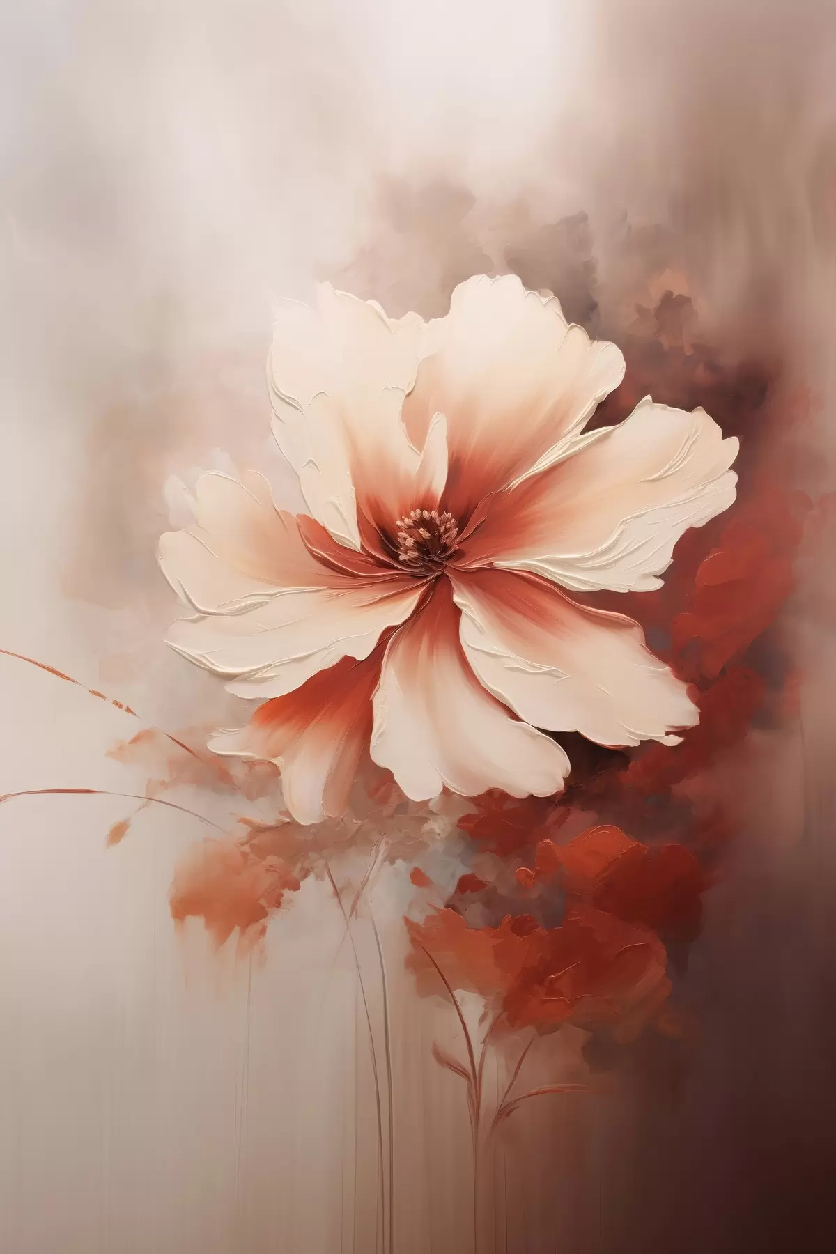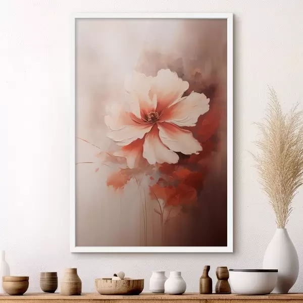 Poster Finom fehér korallvirág homályos háttér előtt, olajfestmény stílusban Nr f46938