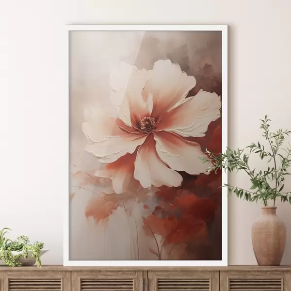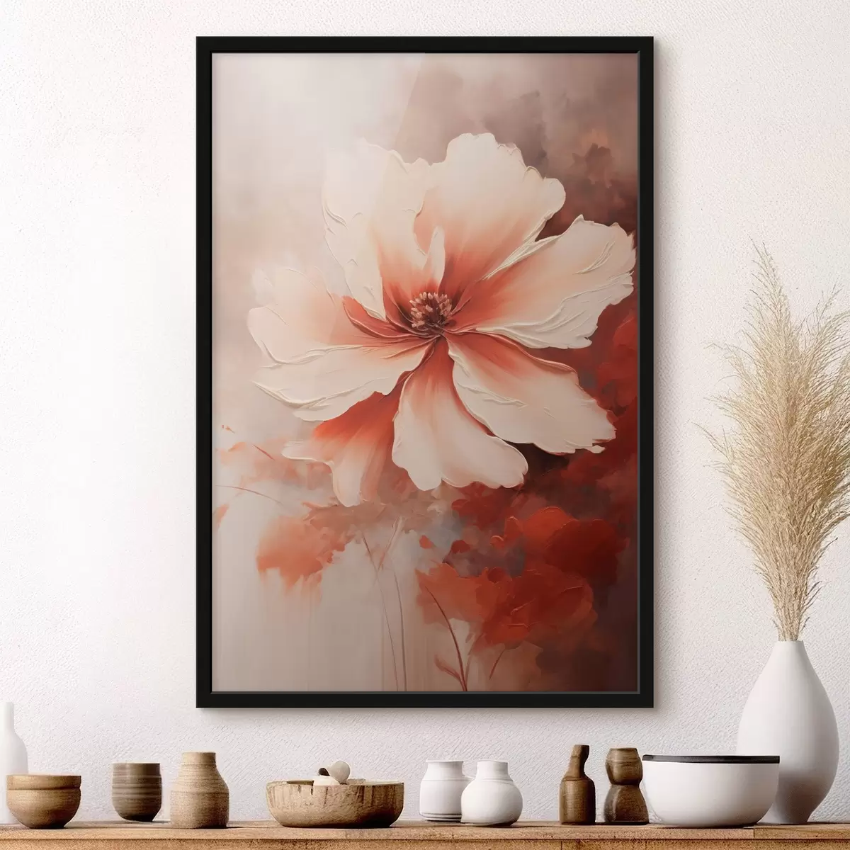 Poster Közelkép egy fehér korallvirágról homályos háttér előtt, olajfestmény stílusban Nr f46939