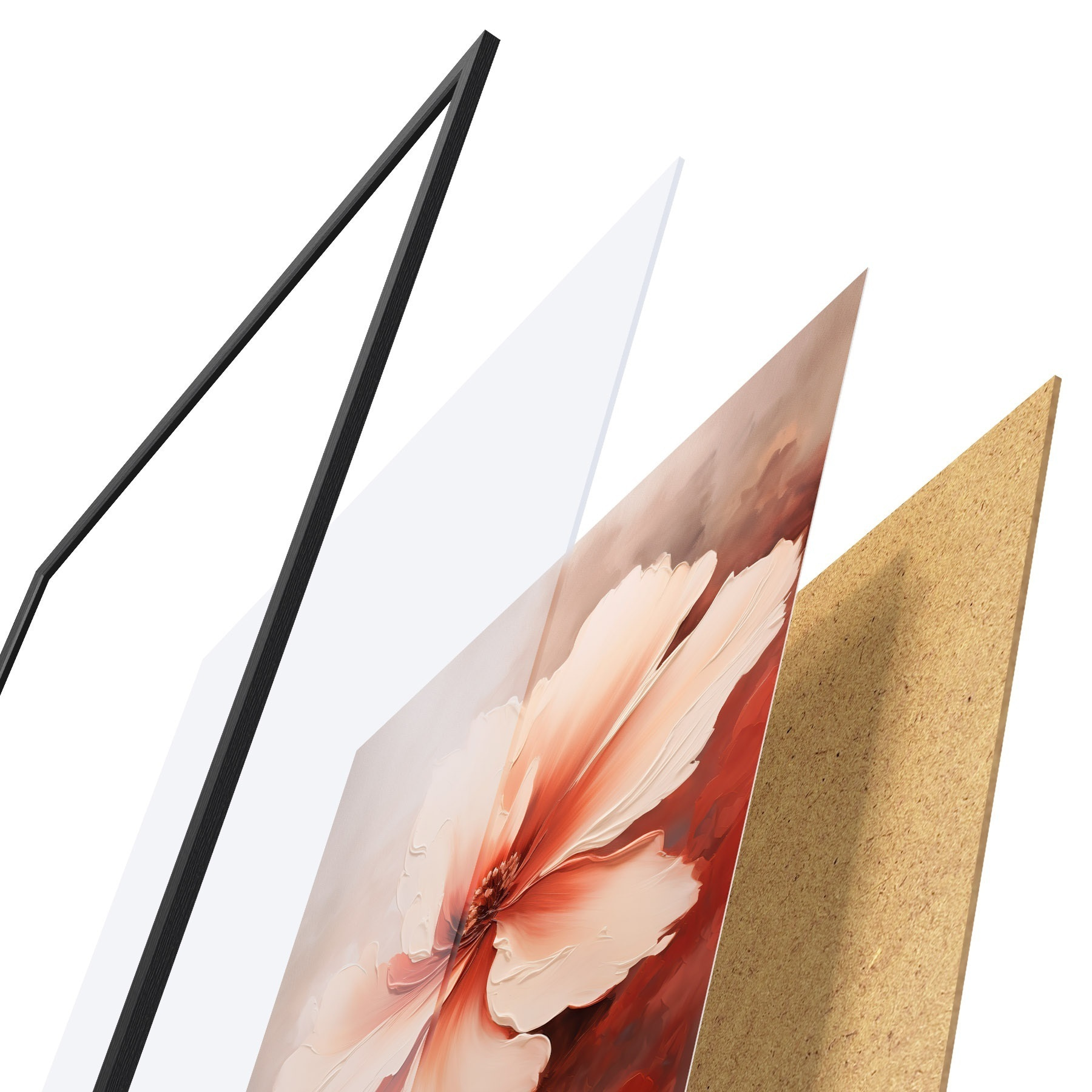 A poszter keretből, plexiből, nyomtatott képből és forgácslap hátlapból áll. A poszter a hátoldalon található rögzítőknek köszönhetően azonnal felakasztható a falra.
