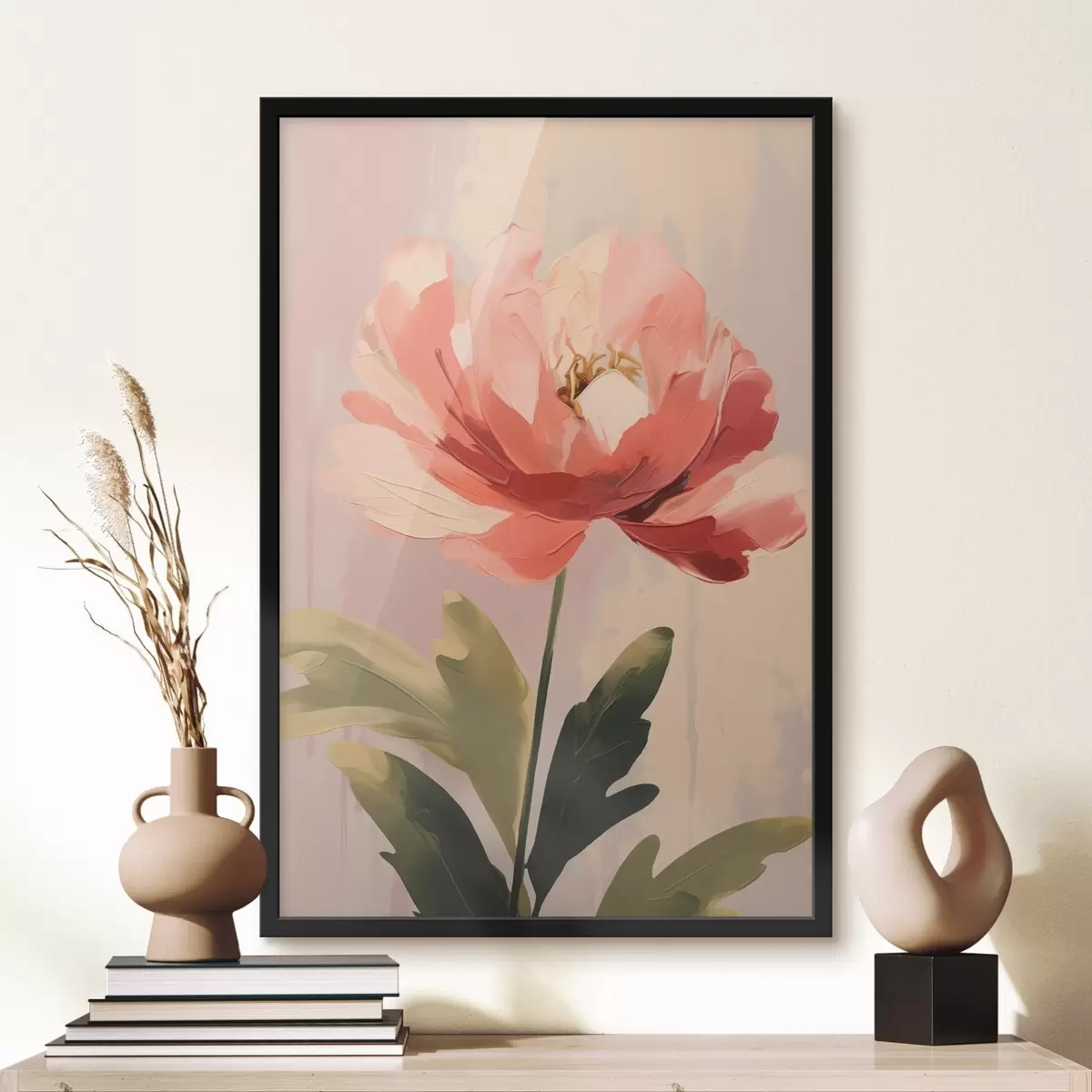 Poster Korallszínű pünkösdi rózsa pasztell háttér előtt, modern művészeti illusztrációs stílusban Nr f46949