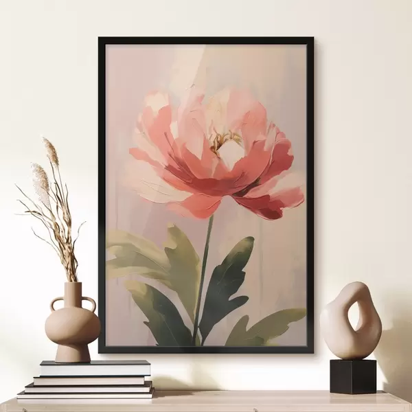 Plakát a sziklán Korallszínű pünkösdi rózsa pasztell háttér előtt, modern művészeti illusztrációs stílusban f46949