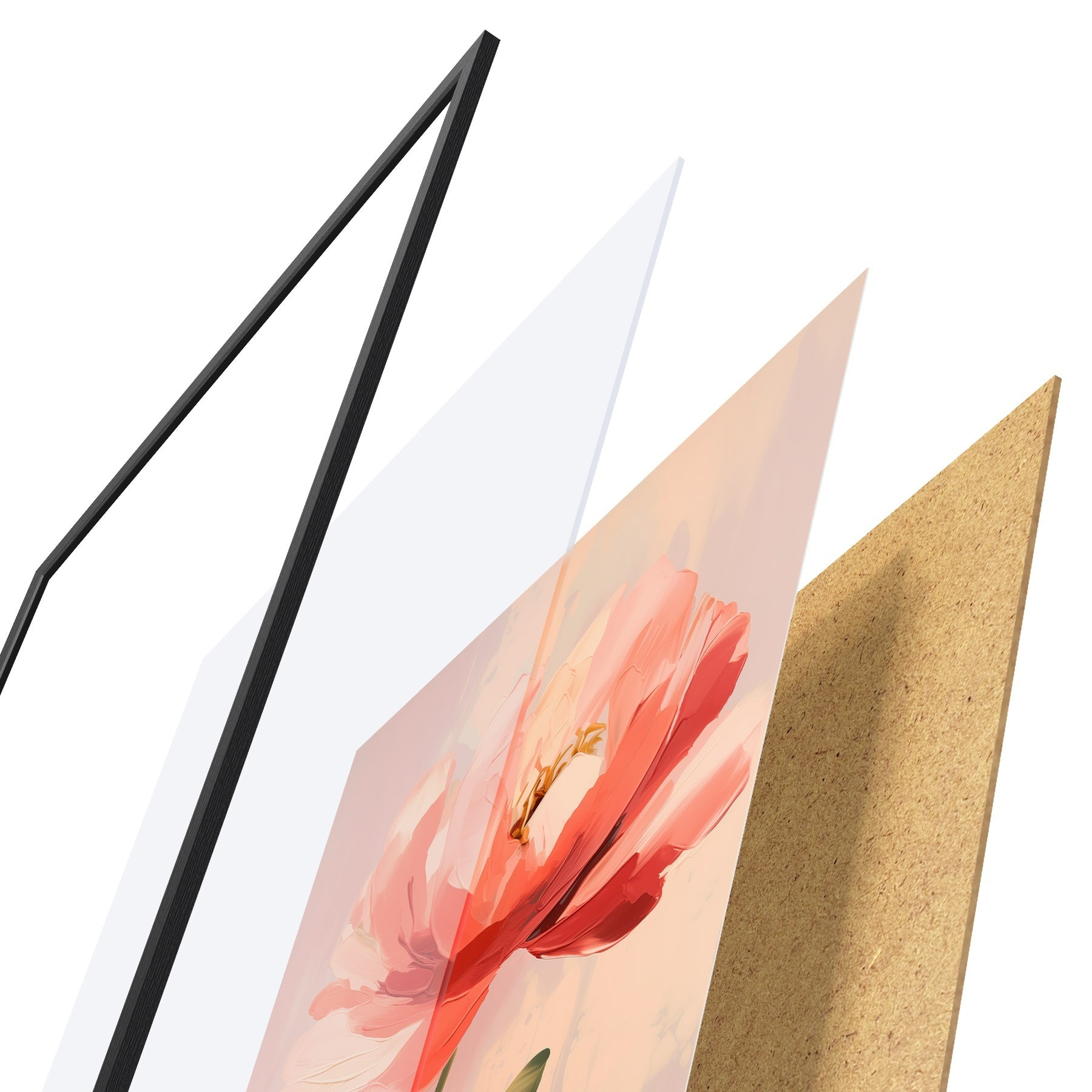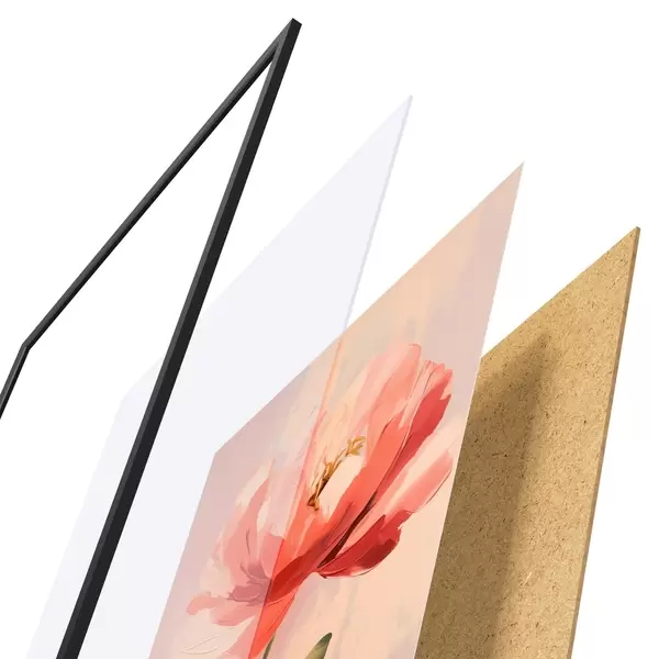 A poszter keretből, plexiből, nyomtatott képből és forgácslap hátlapból áll. A poszter a hátoldalon található rögzítőknek köszönhetően azonnal felakasztható a falra.