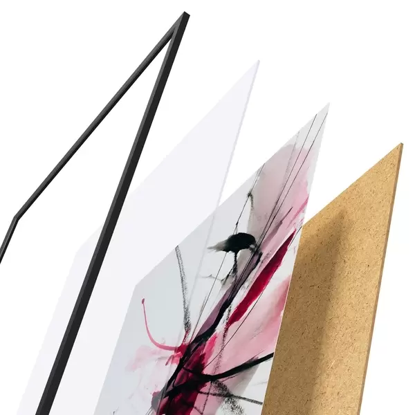 A poszter keretből, plexiből, nyomtatott képből és forgácslap hátlapból áll. A poszter a hátoldalon található rögzítőknek köszönhetően azonnal felakasztható a falra.