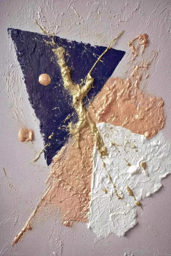 Poster Absztrakt kompozíció sötétkék háromszöggel és dombornyomott ecsetvonásokkal, olajfestmény stílusban Nr f46953