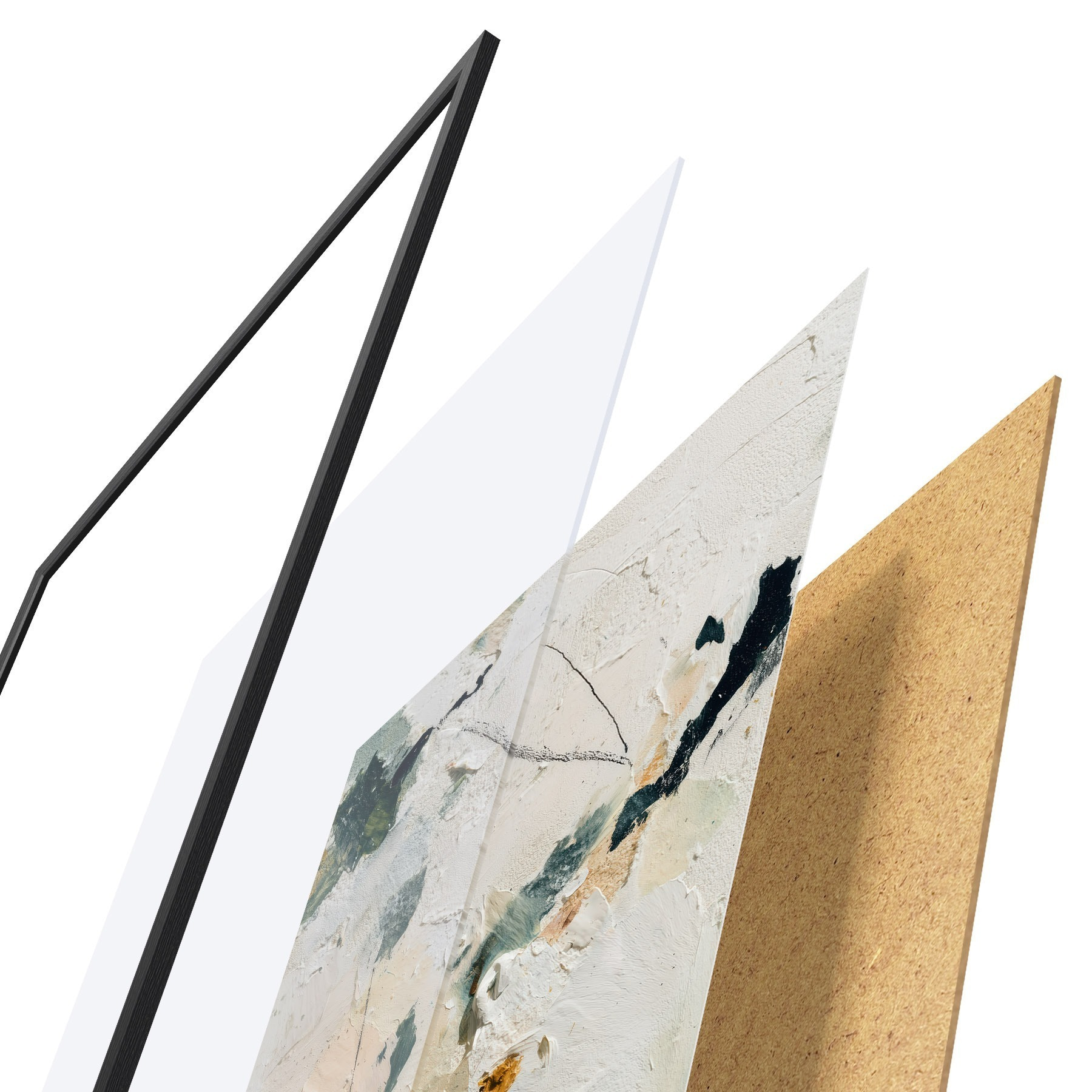 A poszter keretből, plexiből, nyomtatott képből és forgácslap hátlapból áll. A poszter a hátoldalon található rögzítőknek köszönhetően azonnal felakasztható a falra.