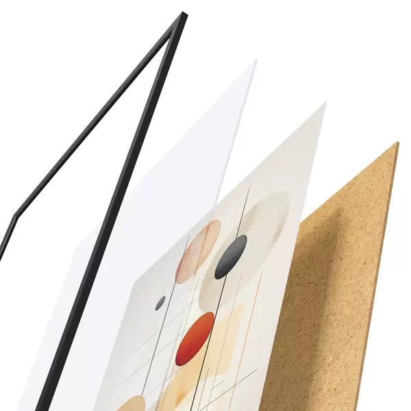A poszter keretből, plexiből, nyomtatott képből és forgácslap hátlapból áll. A poszter a hátoldalon található rögzítőknek köszönhetően azonnal felakasztható a falra.