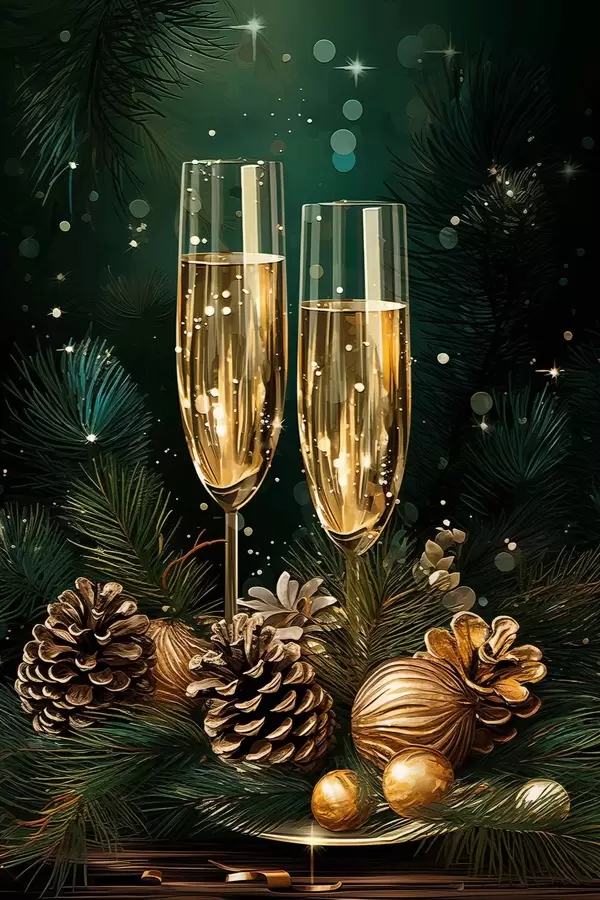 Plakát a sziklán Újévi kompozíció, pezsgőspoharak f46981