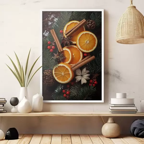 Plakát a sziklán Gyümölcsök, narancs és fahéj rajza f46986