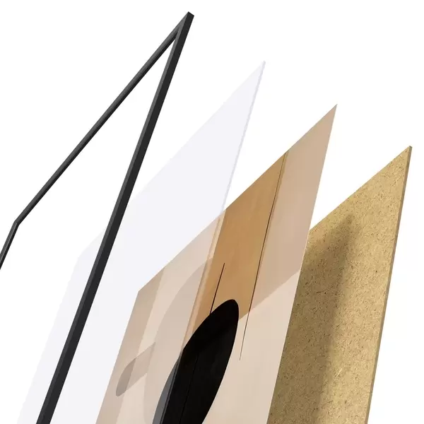 A poszter keretből, plexiből, nyomtatott képből és forgácslap hátlapból áll. A poszter a hátoldalon található rögzítőknek köszönhetően azonnal felakasztható a falra.