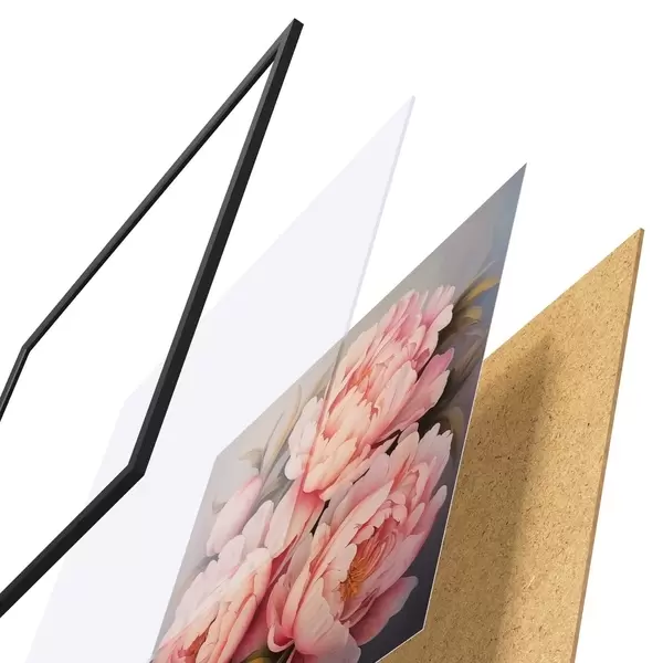 A poszter keretből, plexiből, nyomtatott képből és forgácslap hátlapból áll. A poszter a hátoldalon található rögzítőknek köszönhetően azonnal felakasztható a falra.