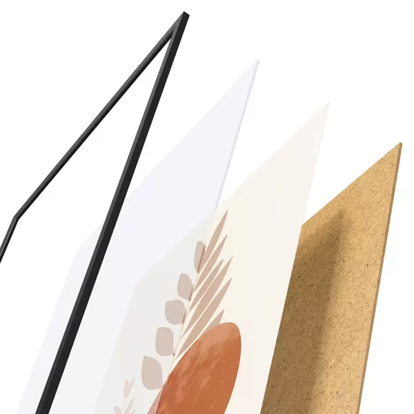 A poszter keretből, plexiből, nyomtatott képből és forgácslap hátlapból áll. A poszter a hátoldalon található rögzítőknek köszönhetően azonnal felakasztható a falra.