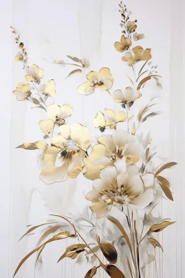 Plakát a sziklán Texturált sárga virágok és levelek fehér háttér előtt, finom ecsetvonásokkal f47016