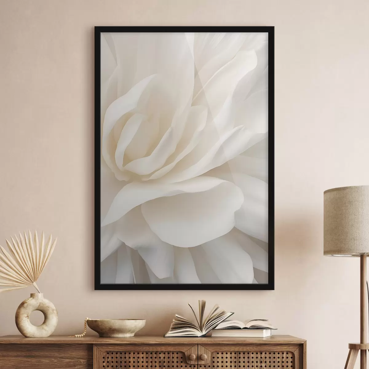 Poster Absztrakt fehér virág finom, réteges szirmokkal, minimalista művészet Nr f47024
