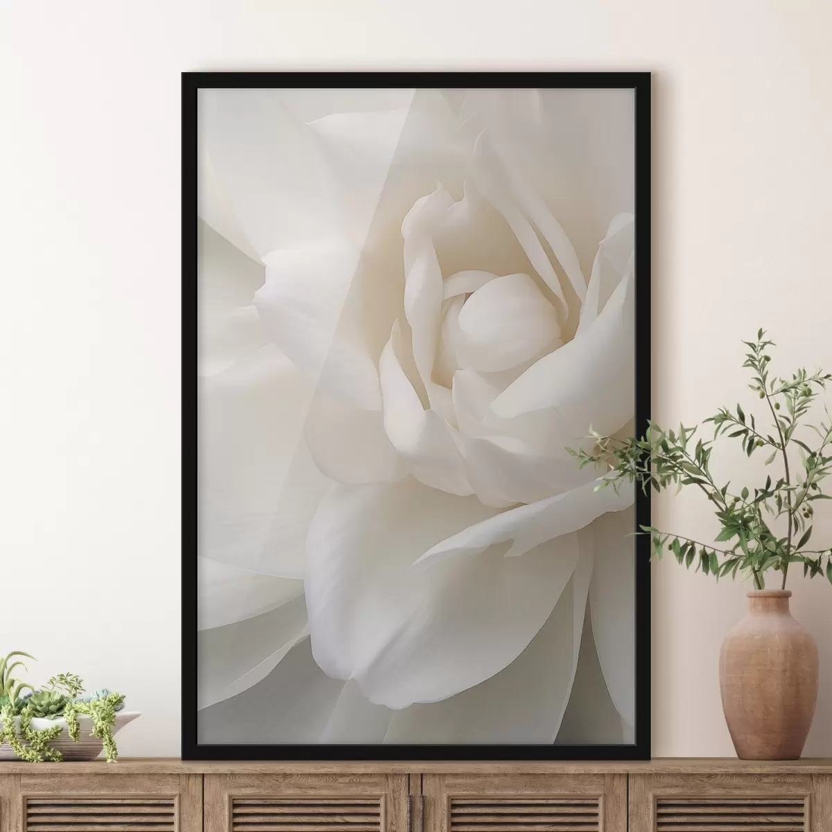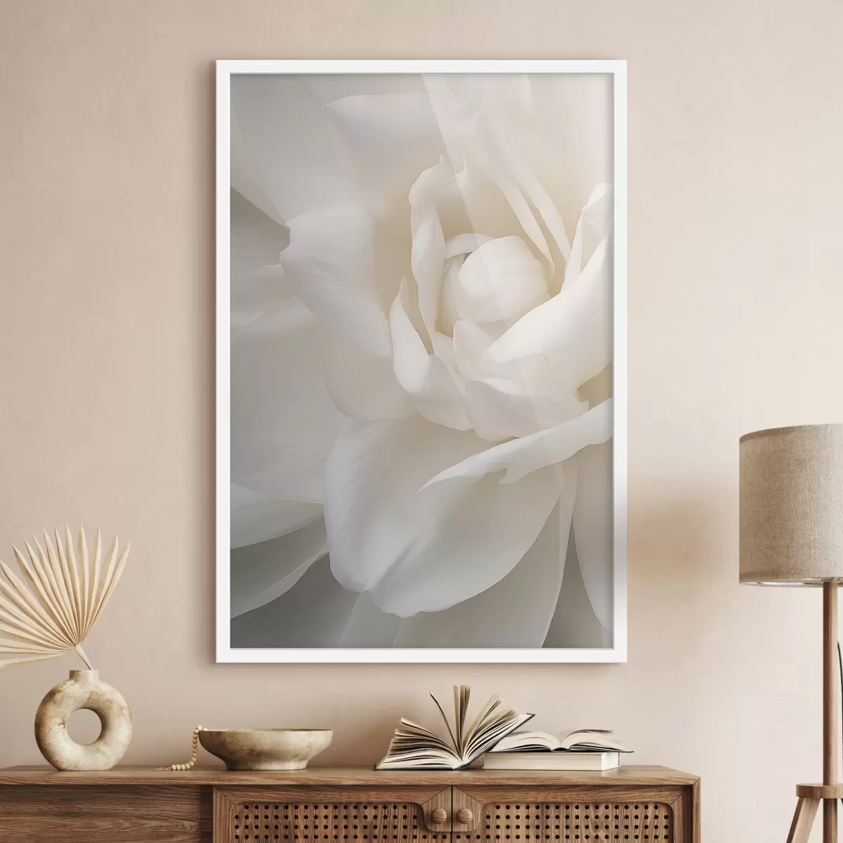Poster Absztrakt fehér virág finom, réteges szirmokkal, minimalista művészet Nr f47025