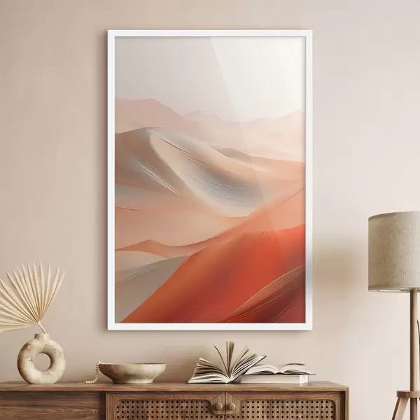 Poster Absztrakt sivatagi táj, meleg narancssárga és fehér tónusú, hullámzó homokdűnékkel Nr f47030
