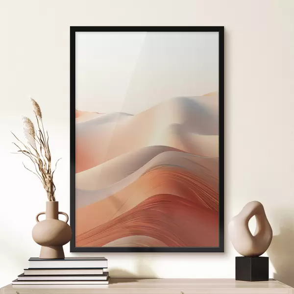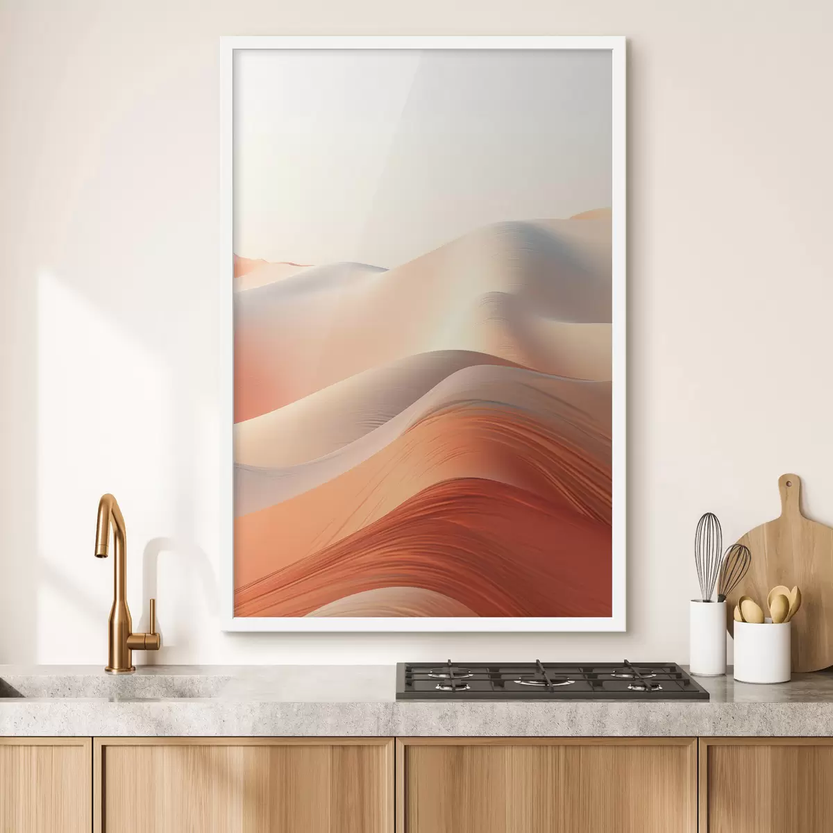 Poster Absztrakt sivatagi táj, meleg narancssárga és fehér tónusú, hullámzó homokdűnékkel Nr f47031