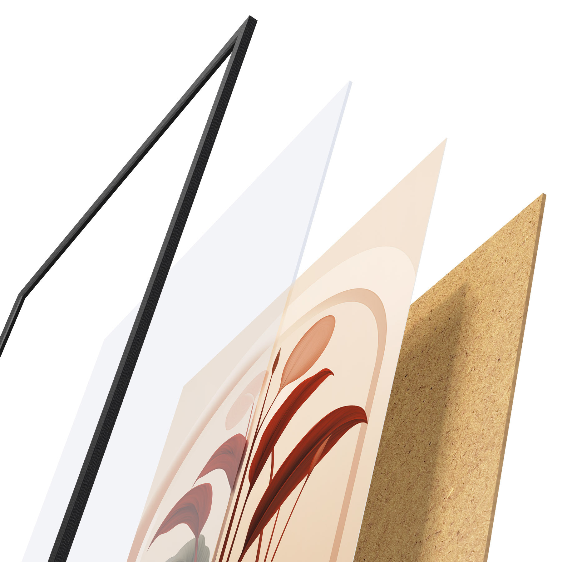 A poszter keretből, plexiből, nyomtatott képből és forgácslap hátlapból áll. A poszter a hátoldalon található rögzítőknek köszönhetően azonnal felakasztható a falra.