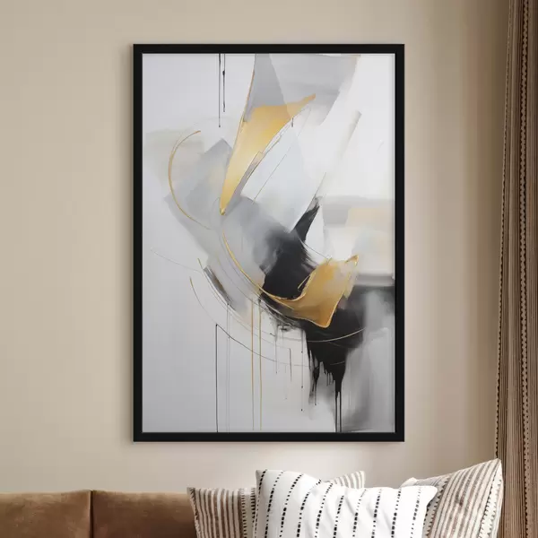 Plakát a sziklán Absztrakt festmény sárga, fekete és fehér ecsetvonásokkal, dinamikus vonalakkal f47034
