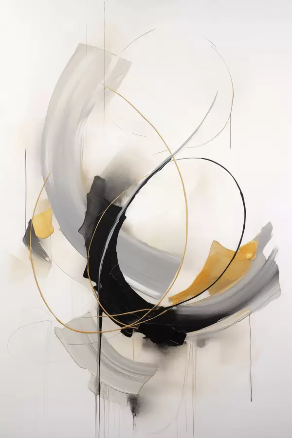 Poster Absztrakt festmény sárga, fekete és fehér ecsetvonásokkal, dinamikus vonalakkal Nr f47035