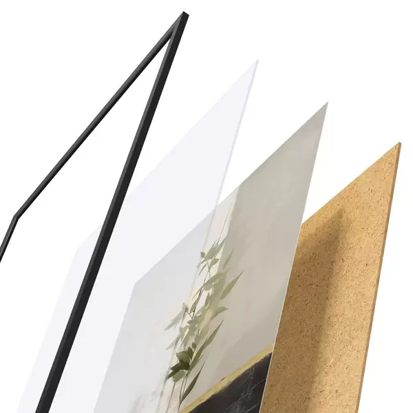 A poszter keretből, plexiből, nyomtatott képből és forgácslap hátlapból áll. A poszter a hátoldalon található rögzítőknek köszönhetően azonnal felakasztható a falra.