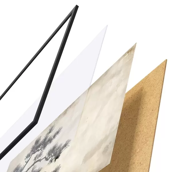 A poszter keretből, plexiből, nyomtatott képből és forgácslap hátlapból áll. A poszter a hátoldalon található rögzítőknek köszönhetően azonnal felakasztható a falra.